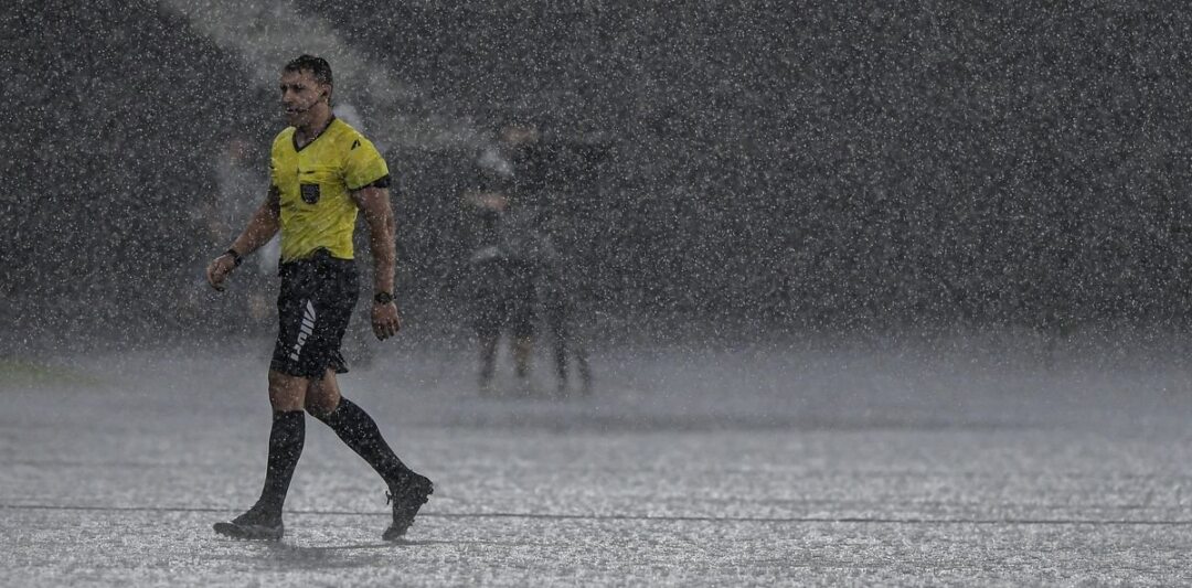 Com apenas dez minutos jogados, poças de água passaram a impedir a rolagem da bola. Para preservar a segurança dos atletas, o árbitro decidiu paralisar a partida.