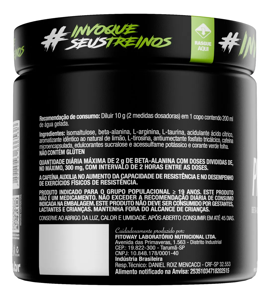 Acesulfame de potássio, Acidulante ácido cítrico, Alanina, Antiumectante fosfato tricálcico, Arginina, Cafeína, Adoçante de sucralose, Taurina |